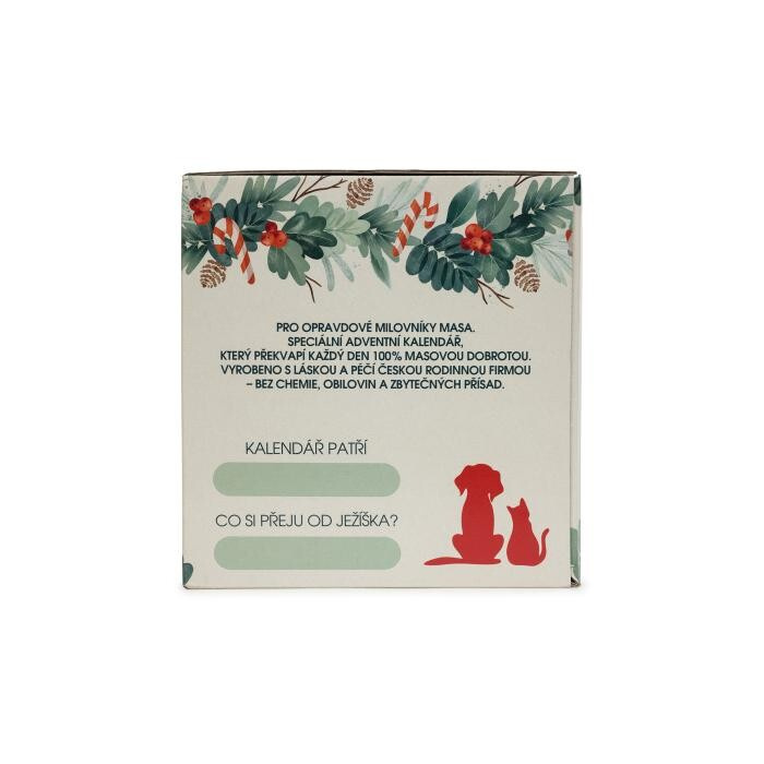 Adventní kalendář má krásný vánoční design, NOVÉ praktické balení - snadné otevírání okének i vyndávání jednotlivých konzerv. Může sloužit i jako vhodný vánoční dárek nebo jen pro radost. Uvnitř naleznete speciální edici konzervy.