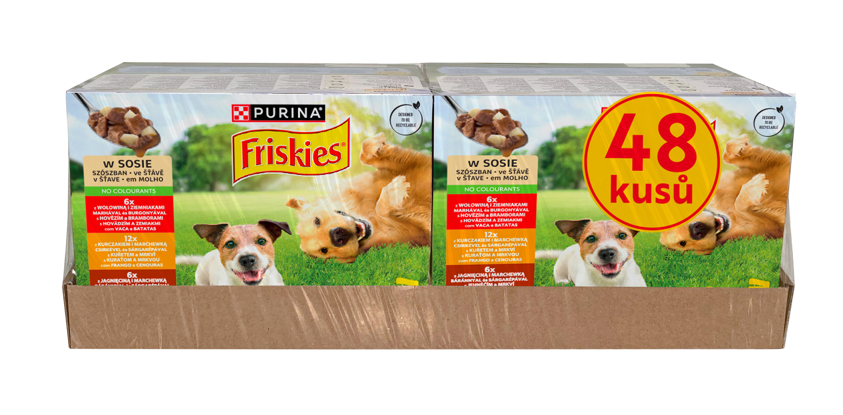 Krmný návod: Hmotnost psa 5 kg: 7 kapsiček nebo kombinujte 80 g granulí + 2 kapsičky; Hmotnost psa 10 kg: 11 kapsiček nebo kombinujte 115 g granulí + 4 kapsičky; Hmotnost psa 25 kg: 19 kapsiček nebo kombinujte 220 g granulí + 7 kapsiček. Kombinujte s PURINA® FRISKIES® Balance granulemi. Krmné dávky jsou určené pro dospělé středně aktivní psy v přirozeném prostředí. Individuální potřeby se mohou lišit a krmnou dávku je proto nutné přizpůsobit tak, aby si váš pes udržel optimální hmotnost. Čistá čerstvá pitná voda by měla být vždy k dispozici.