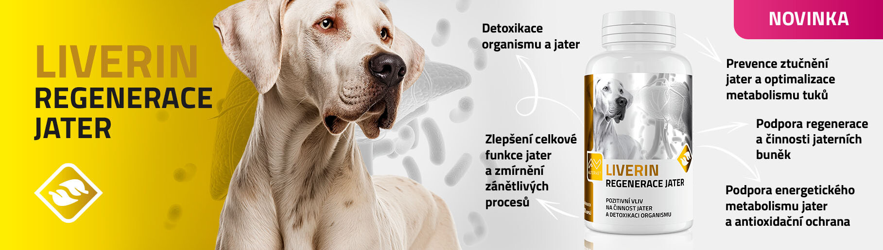 Liverin je veterinární přípravek speciálně vyvinutý pro podporu činnosti jater a jejich regeneraci. Je vhodný jak pro psy se zhoršenou funkcí jater, tak i jako prevence před poškozením jaterních buněk. Díky komplexnímu složení s hepatoprotektivními a detoxikačními účinky pomáhá chránit játra před škodlivými vlivy a zároveň podporuje správné metabolické procesy v těle.