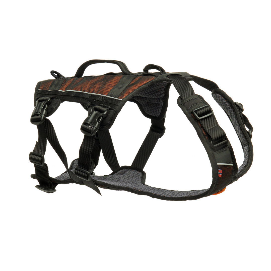 Popruh je vysoce nastavitelný kolem krku a hrudníku. Čtyři boční uvolňovací přezky usnadňují zapínání a vypínání postroje.