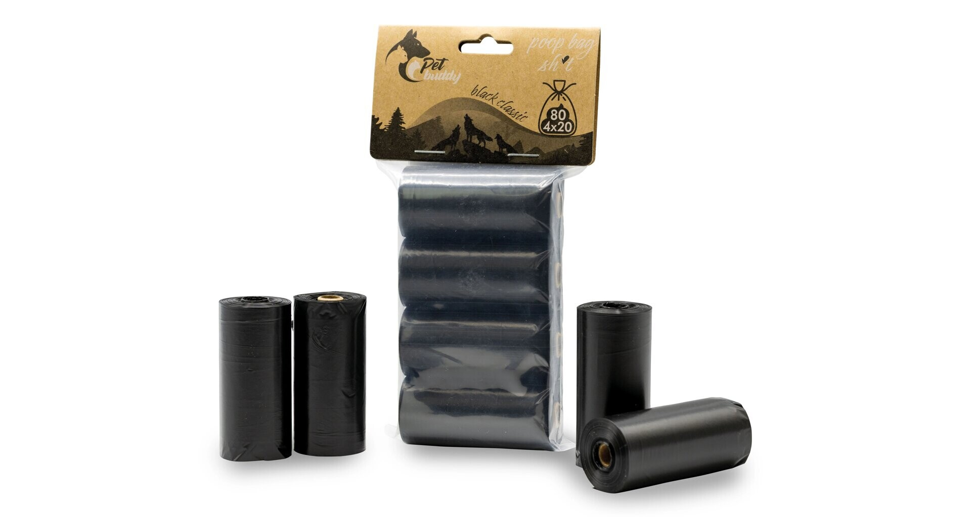 PetBuddy sáčky na exkrementy KLASIK 4 role/ á 20 sáčků, černé bez potisku