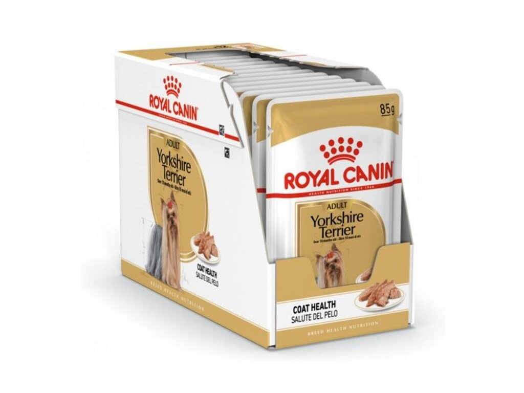 Yorkshirští teriéři neboli „Yorkies“ jsou přirozeně vyrovnaní, aktivní a inteligentní psi – plní energie a chuti. Za jeho nejznámější rys je považována výrazná srst jorkšírského teriéra. Srst jorkšírského teriéra připomíná srst koně a je mimořádně jemná a dlouhá – také nikdy nepřestane růst. Atraktivní účes yorka nelíná a může těžit ze speciálních živin, aby zůstal měkký a hedvábný. ROYAL CANIN® Yorkshire Terrier in Loaf je vhodný pro yorkshirské teriéry starší 10 měsíců a je speciálně vytvořen s ohledem na všechny nutriční potřeby vašeho dospělého psa. .ROYAL CANIN® Yorkshire Terrier in Loaf přispívá k udržení zdraví kůže a také k podpoře zdraví její dlouhé srsti. Exkluzivní směs optimálních živin je pečlivě vybrána tak, aby pomohla vašemu psovi udržet si lesklou a lesklou srst. Toto krmivo také pomáhá podporovat zdraví trávicího traktu s přesnou hladinou živin. ROYAL CANIN® Yorkshire Terrier in Loaf je vyroben s upravenou texturou, aby se zvýšila úroveň chutnosti a pomohla stimulovat chuť k jídlu vašeho psa. Vůně a jemnost tohoto chutného bochníku by měla pomoci uspokojit chuť k jídlu i toho nejnáročnějšího jorkšírského teriéra! Aby vyhověl individuálním preferencím každého psa, je ROYAL CANIN® Yorkshire Terrier in Loaf k dispozici také jako suché krmivo s křupavými a chutnými granulemi. Pokud uvažujete o smíšeném krmení, jednoduše postupujte podle našich pokynů pro krmení, abyste zajistili, že váš pes dostane přesné množství mokrého i suchého krmiva pro optimální užitek. Ve společnosti ROYAL CANIN® jsme odhodláni poskytovat nutriční řešení pro potřeby vašeho mazlíčka. Všechny naše produkty procházejí rozsáhlým procesem kontroly kvality, aby byla zaručena optimální kvalita krmiva a aby vyhovovaly specifickým dietním požadavkům a životnímu stylu vašeho psa. To znamená, že když váš pes jí ROYAL CANIN® Yorkshire Terrier in Loaf, dostává kompletní a vyváženou stravu.