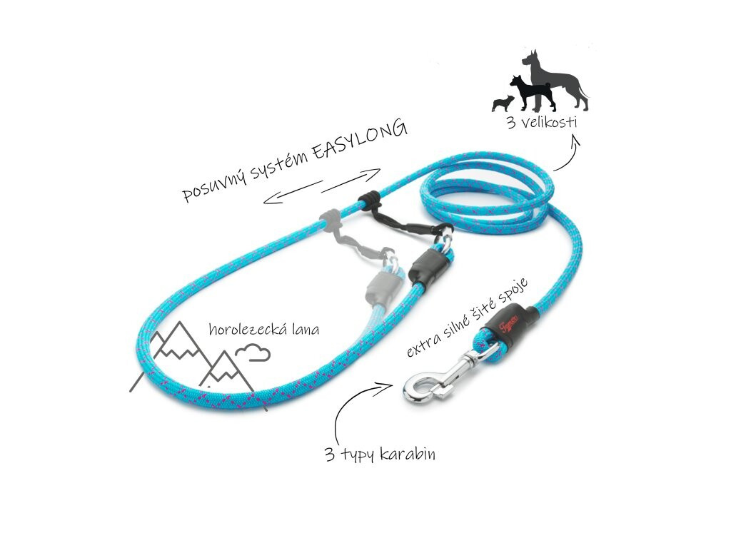 Originální technologie EASY LONG vám umožní snadným pohybem prodloužit či zkrátit vodítko na vámi požadovanou délku. Vodítko je velmi pevné, nedochází tedy k tzv. pružinovému efektu, který může být nežádoucí u „flexibilních“ vodítek. Nevytváří tak špatné návyky při vedení na vodítku. Naopak vodítko je velice populární při výcviku nebo sportu.