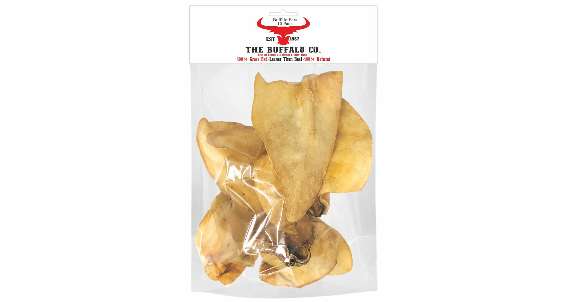 Sušené buvolí uši představují netradiční alternativu k oblíbeným vepřovým žvýkacím pamlskům pro psy. Oproti vepřovým uším mají nižší obsah cholesterolu a tuku, a proto jsou vhodné i pro psy, kteří potřebují odlehčenou dietu. V balení se nachází 10 kusů uší různé velikosti, díky čemuž si na své přijdou psi různých plemen.