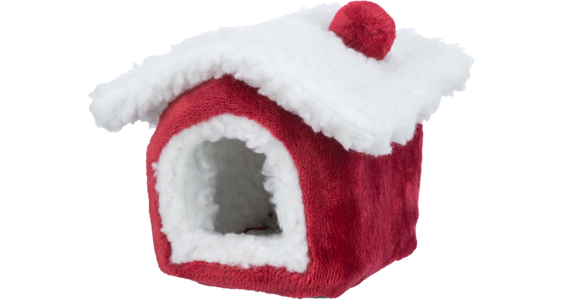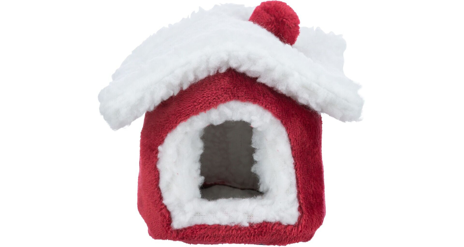 Xmas Cuddly CAVE - plyšový domek pro myš/křečka,15 x 12 x 15 cm, červená/bílá
