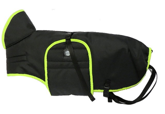 Výhodou je její snadné oblékání - na suchý zip kolem krku a kolem podbřišku, obojí zajištěno navíc plastovou sponou. Součástí pláštěnky jsou též popruhy k zadním končetinám psa, díky nimž pláštěnka lépe přilne k tělu. Nechybí ani očko k provlečení ocásku. Další předností je otvor v límci pro připnutí vodítka k obojku.